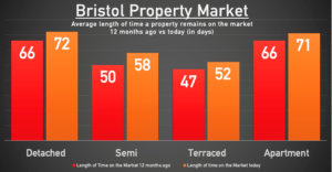 When it comes to the average length of time on the market, all the property types in Bristol appear to be taking longer to sell.