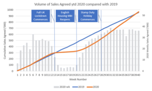 • In the first 13 weeks of 2020 (prior to lockdown on 23rd March) sales agreed was just starting to show an increased volume in 2020 compared with the prior year – this was widely referred to as “the Boris bounce”