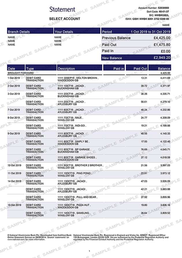 To help, we have provided examples of the main bank statement formats below: